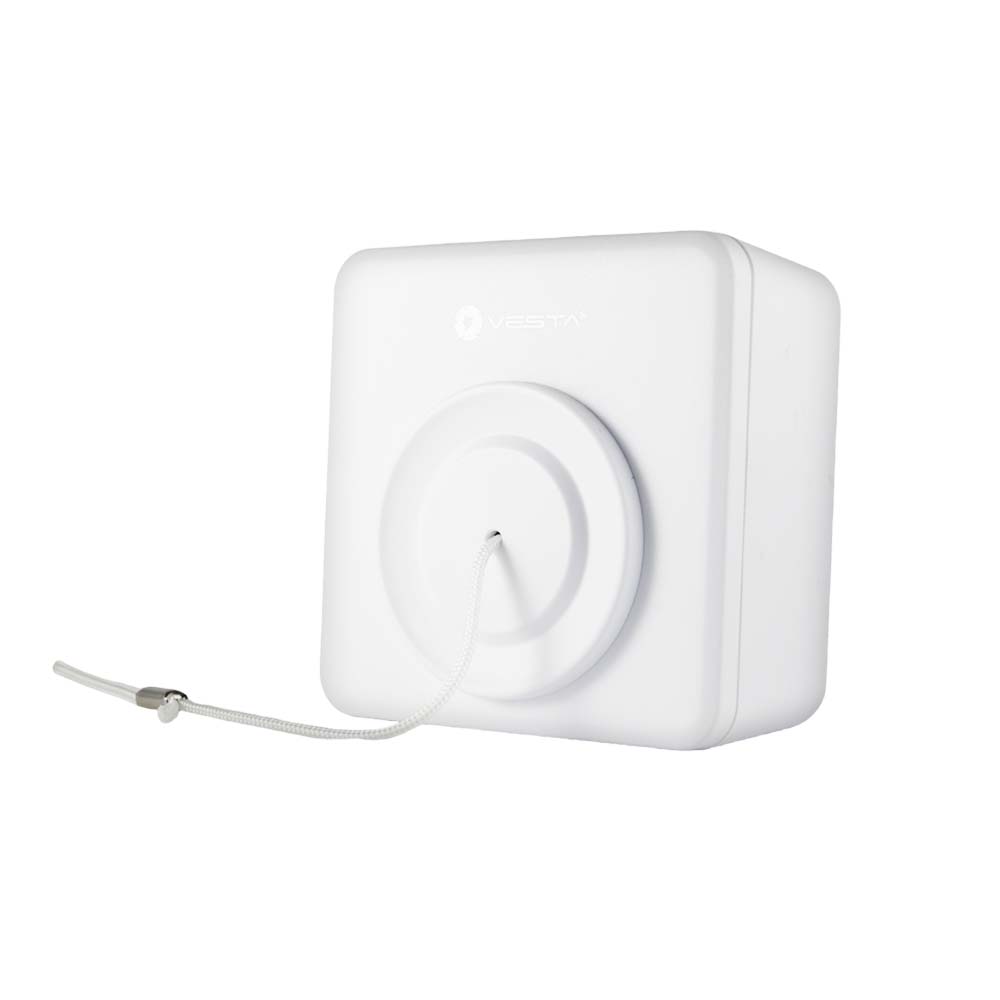 Der VESTA-093 (PCU-3) ist ein zuverlässiger Funk-Notrufzug für die Innenmontage, der älteren oder hilfsbedürftigen Personen eine leicht zugängliche Möglichkeit bietet, im Notfall schnell Hilfe zu rufen. Durch das einfache Ziehen an der 175 mm langen Reißleine wird sofort ein Alarm per Funk an die angeschlossene VESTA-Zentrale oder ein medizinisches Alarmsystem ausgelöst. Der Notrufzug kann sowohl an der Wand als auch an der Decke montiert werden und ist somit flexibel in Badezimmern, Schlafzimmern, Fluren oder Aufenthaltsbereichen einsetzbar – aber nicht wasserdicht, weshalb er nicht direkt in Nasszonen montiert werden darf. Dank geringer Batterielast und 24-Stunden-Überwachungsübertragung arbeitet das Gerät besonders wartungsarm, während automatische Niedrigbatterie-Meldungen für zusätzliche Betriebssicherheit sorgen. Der VESTA-093 erweitert das Sicherheitsnetz im Haushalt erheblich und bietet Nutzern wie Angehörigen ein zusätzliches Gefühl von Sicherheit.